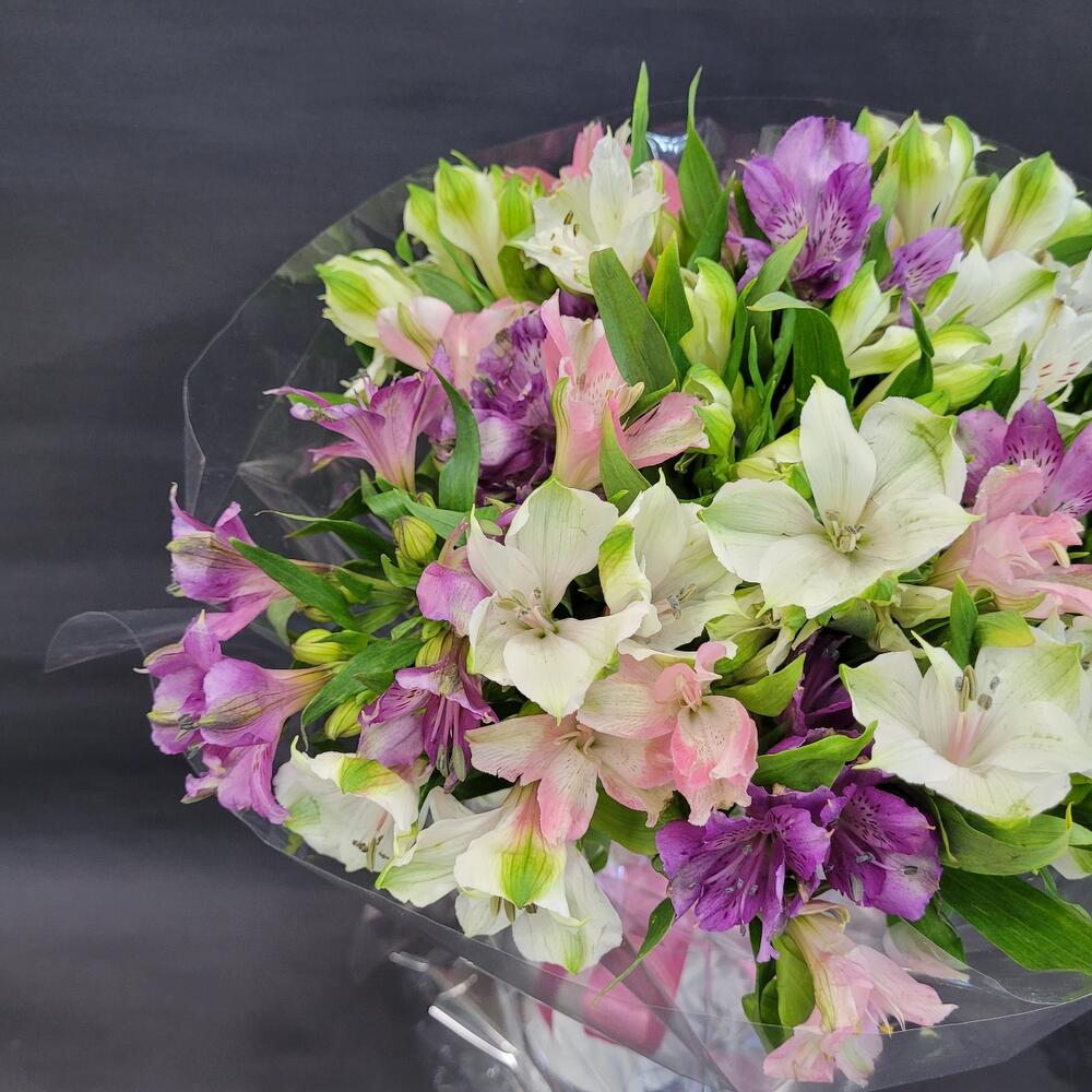 Альстромерия – 15 шт.Упаковка – 2 шт.Лента атласная – 1 шт.