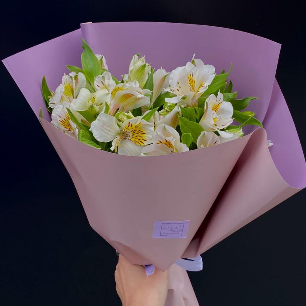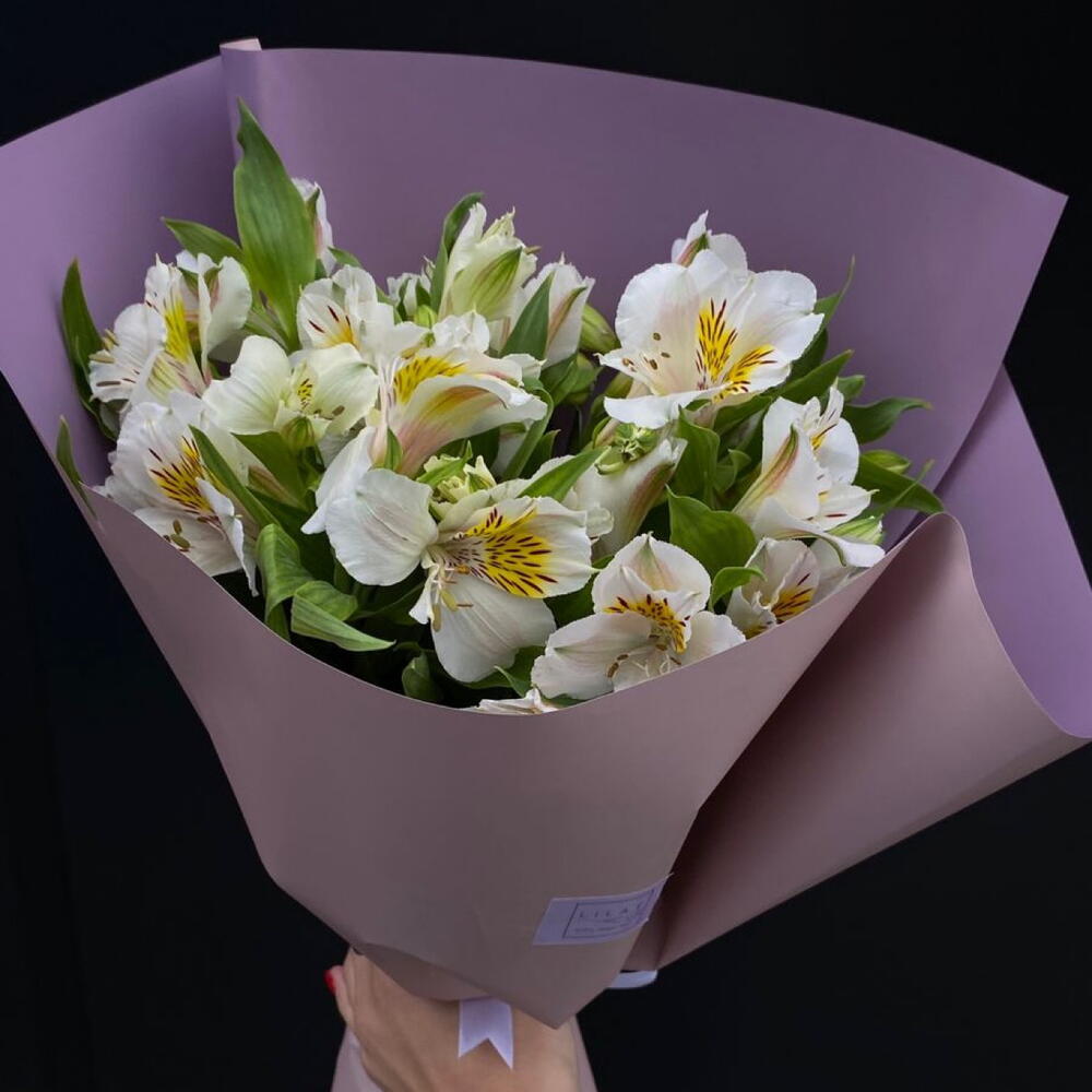 15 Разноцветных Альстромерий в упаковке