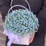 Стильная сумочка с воздушной гипсофилой станет идеальным подарком для самых любимых и близких! Памятка для букета:1. Чистая вода раз в сутки.2. Стебли подрезаем на 0,5см при каждой смене воды.3. Ставим в прохладное место, но не у окна.4. Чтобы вода оставалась свежей, не допускайте попадания листьев и лепестков в воду.5. Если это композиция в оазисе, то так же необходим ежедневный полив.
