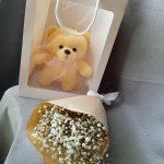 Мишка плюшевый – 1 шт.Гипсофила – 3 шт.Крафт упаковка – 1 шт.Лента – 1 шт.Пакет подарочный – 1 шт.
