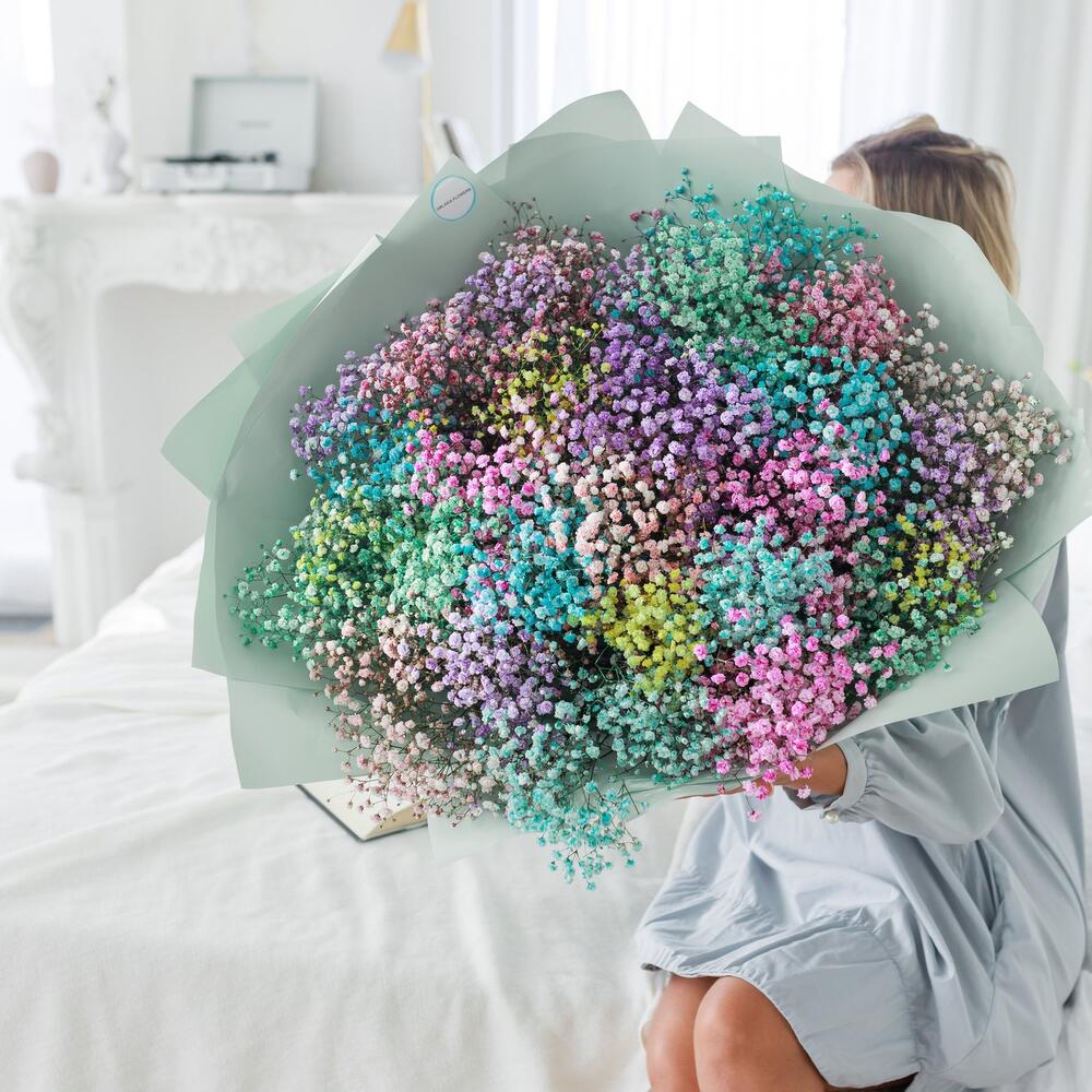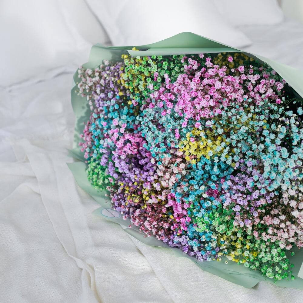 Шикарный букет из воздушной гипсофилы. Получатель точно не останется равнодушным при виде такого гиганта .Инструкция по уходу за цветами прикреплена к каждому заказу.Цветы гипсофилы отличаются стойкостью и даже при высыхании не теряют, декоративности и цвета. Что позволяет, долгое время украшать интерьер в качестве сухоцветов.Подпишем открытку с вашими пожеланиями бесплатно