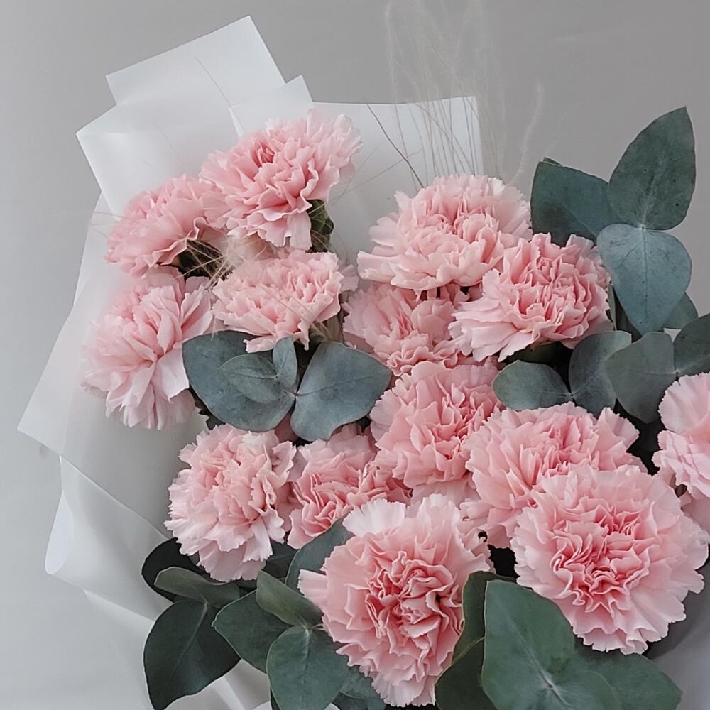 Букет диантусов (гвоздик) с эвкалиптом