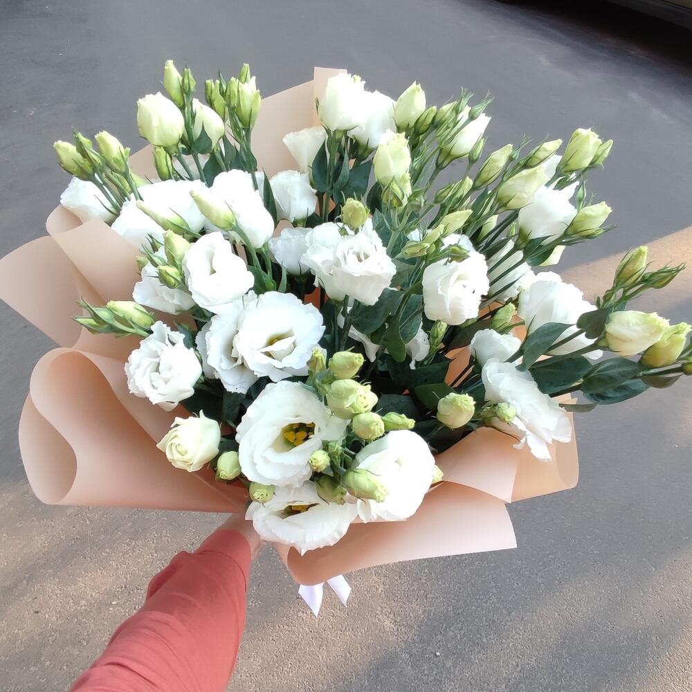 эустома белая – 9 шт. калька флористическая – 1 шт.