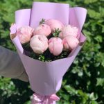 Букет розовых пионов в дизайнерской упаковке 9 шт