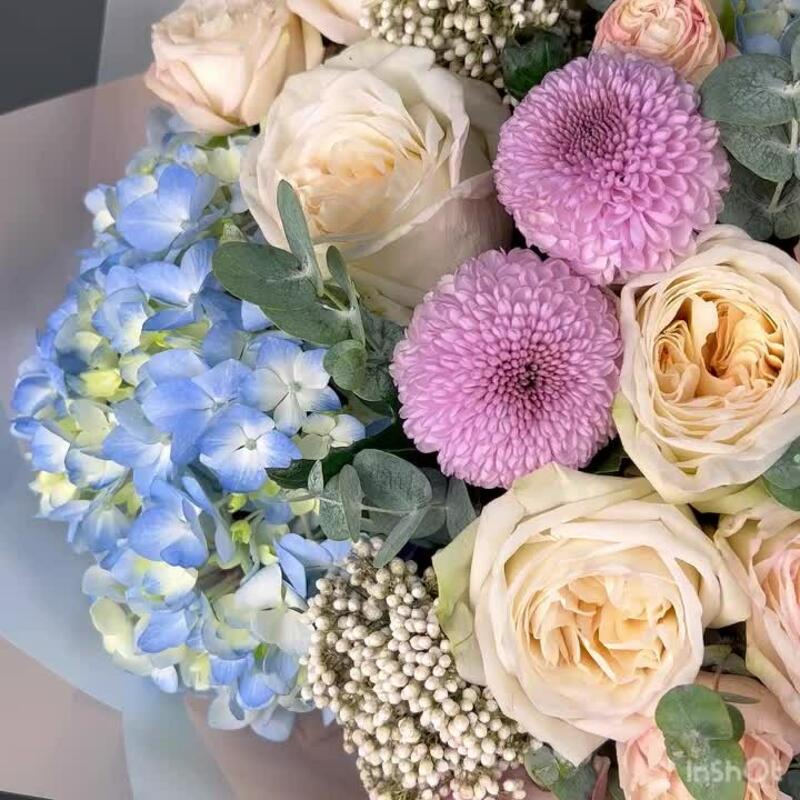Категорий: Гвоздики, Гортензии, Кустовые розы, Пионовидные розы, Розы, Хризантемы