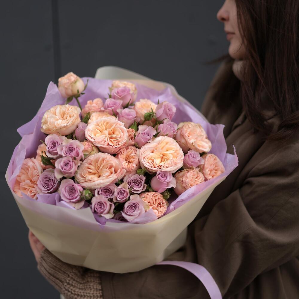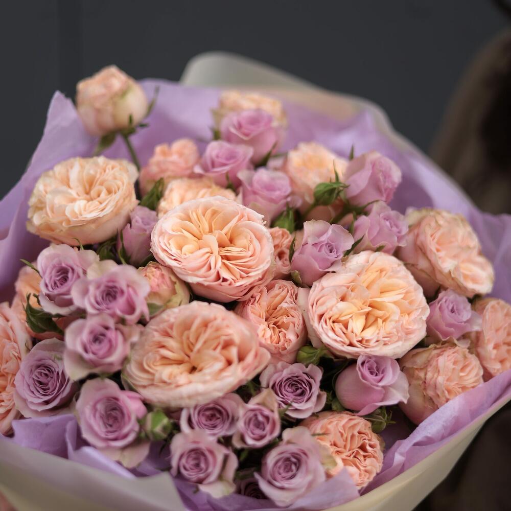 Гвоздики, Лизиантусы, Розы, Тюльпаны