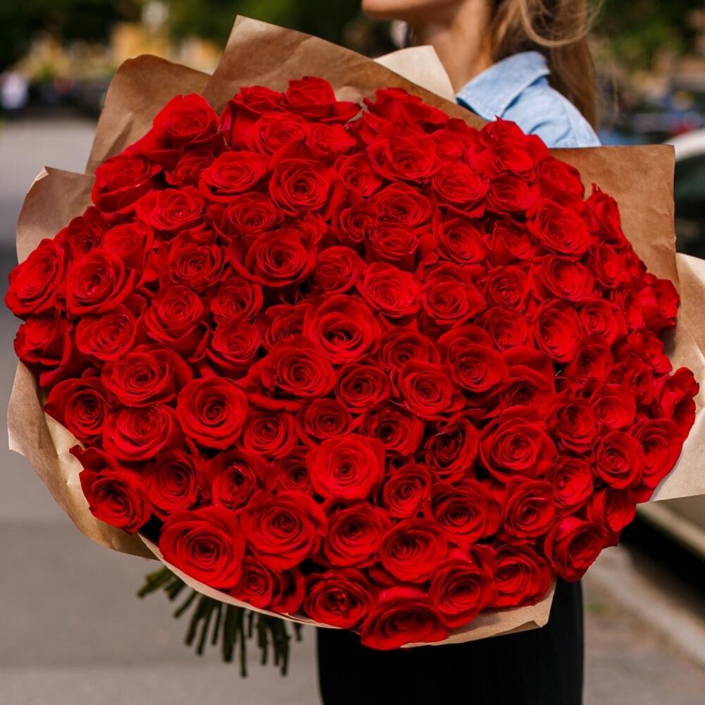 Роза Эквадор – 201 шт.Упаковка дизайнерская – 5 шт.Лента атласная – 3 шт.