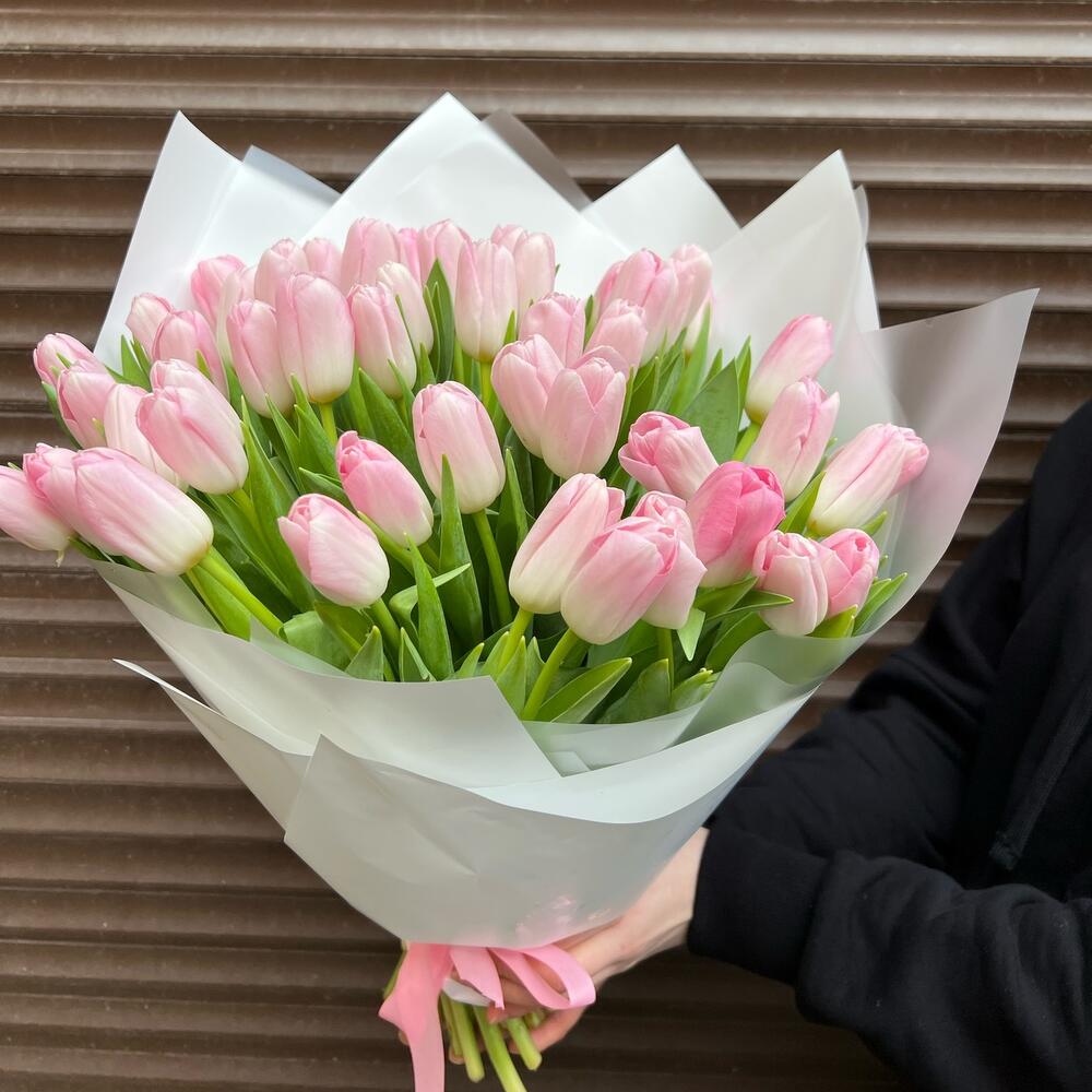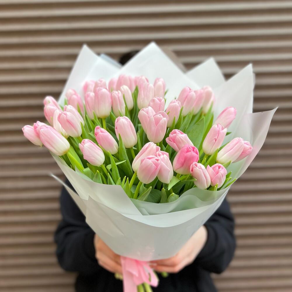 Нежный букет из 51 розового тюльпана